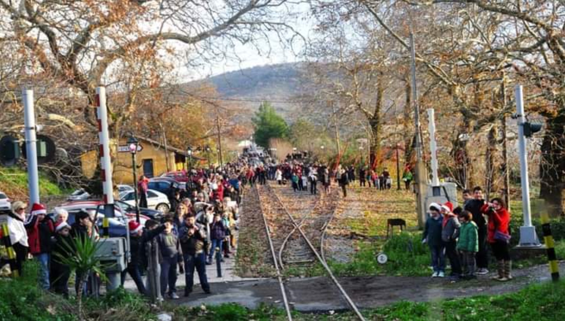 Στην φωτογραφία διακρίνεται ο κόσμος, με την χαρά ζωγραφισμένη στα πρόσωπά τους, περιμένοντας το Χριστουγεννιάτικο τρένο να έρχεται στους Χράνους με κόσμο από την Καλαμάτα και τα παιδιά από το<<Χαμόγελο του Παιδιού>> που εδρεύει στον Πύργο Ηλείας .