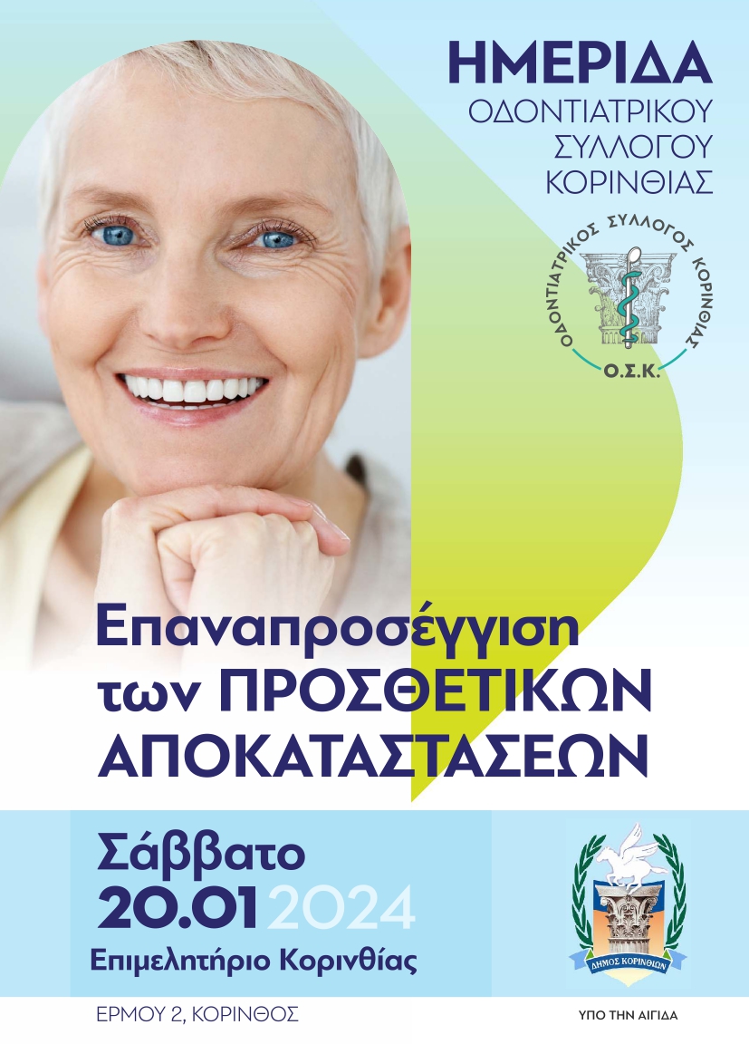 Την Πρωτοχρονιάτικη πίτα του κόβει αύριο Σάββατο 20 Ιανουαρίου ο Οδοντιατρικός Σύλλογος Κορινθίας στο Επιμελητήριο. Στην εορταστική εκδήλωση θα φιλοξενηθούν οι καθηγητές Προσθετικής, κ. Ηρακλής Καρκαζής- Ομότιμος Καθηγητής ΕΚΠΑ, κ. Στέφ. Κούρτης -Αναπλ. Καθηγ. ΕΚΠΑ, κα Όλγα Νάκα -Αναπλ. Καθηγ. ΑΠΘ & κ. Νικήτας Συκαράς Επικ. Καθηγ. ΕΚΠΑ σε μία ”ΕΠΑΝΑΠΡΟΣΕΓΓΙΣΗ ΤΩΝ ΠΡΟΣΘΕΤΙΚΩΝ ΑΠΟΚΑΤΑΣΤΑΣΕΩΝ”