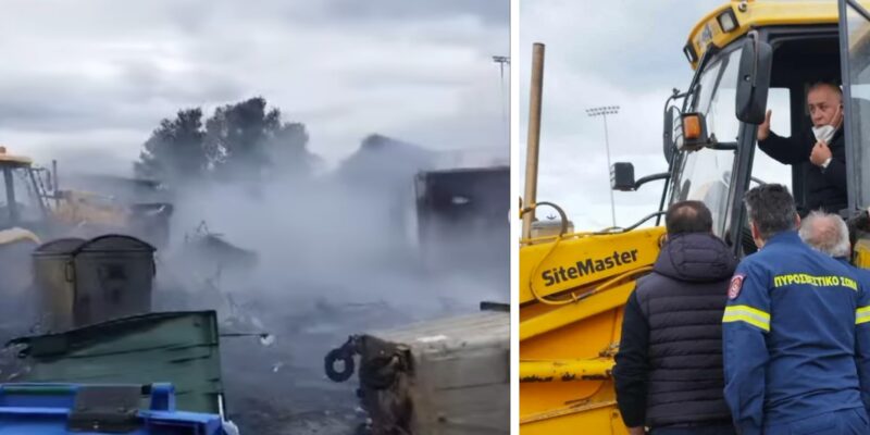 Το εργοτάξιο σώθηκε χάρη στους εργαζόμενους οι οποίοι με αυτοθυσία πάλεψαν με τις φλόγες προστατεύοντας την δημοτική περιουσία.