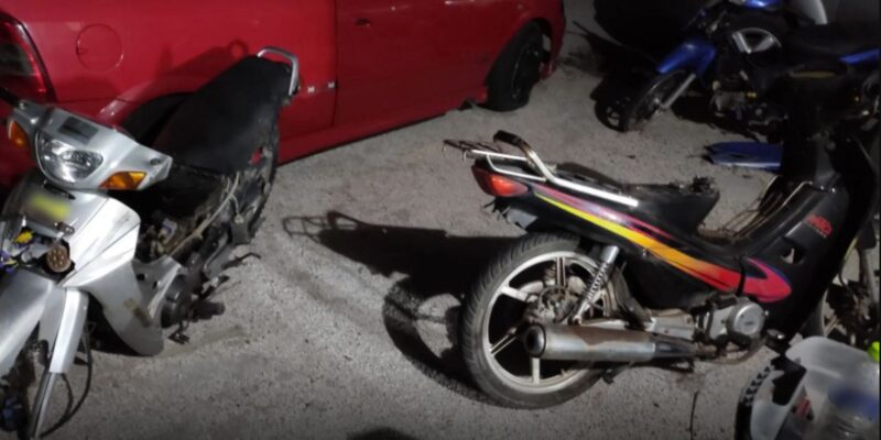 Επιπλέον, βρέθηκαν και κατασχέθηκαν εξαρτήματα δίκυκλων μοτοσυκλετών, καθώς και το πλαίσιο ενός εκ των αφαιρεθέντων δίκυκλων μοτοποδηλάτων.