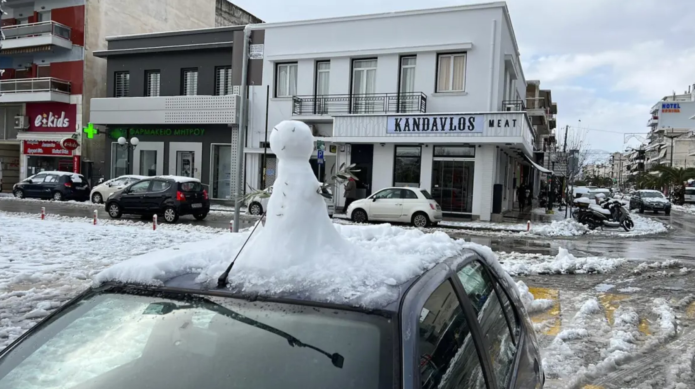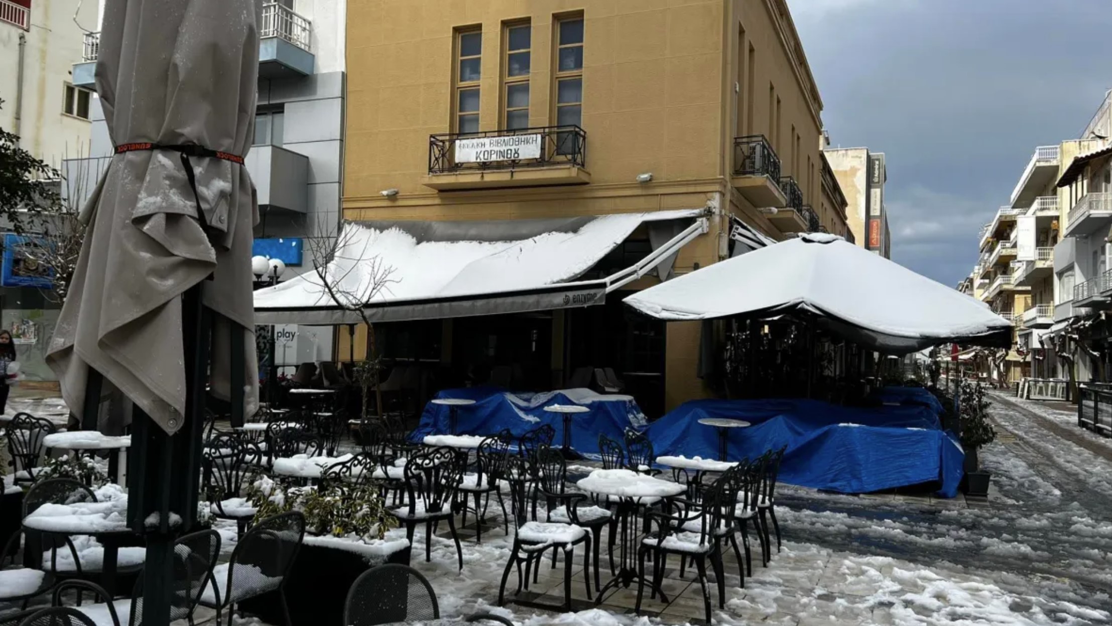 Η τρομερή κακοκαιρία, που είχε οδηγήσει ακόμα και στο κλείσιμο της Αττικης Οδού, είχε φέρει το χιόνι μέσα στις αυλές των σπιτιών, στα μπαλκόνια και τις ταράτσες, στο κέντρο της Κορίνθου.