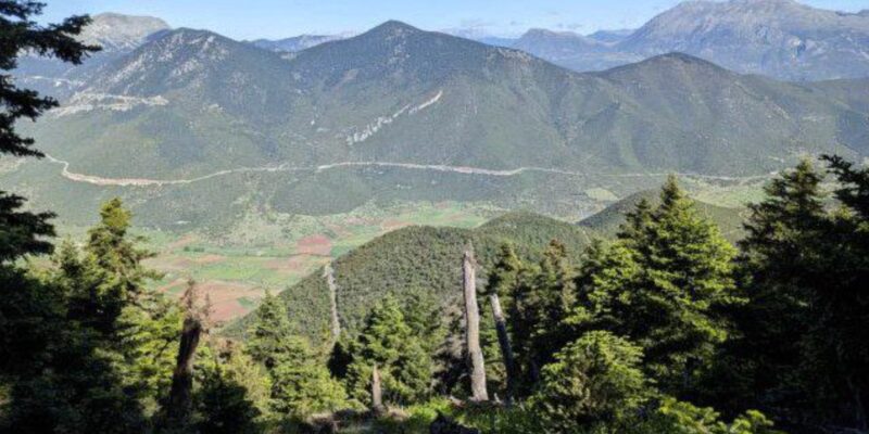 Αρχικά με αγροτικά αποφεύγουμε τα πρώτα 6 χιλιόμετρα, μέχρι το εκκλησάκι της Αγίας Άννας, και μπαίνουμε σε δασωμένο κομμάτι με ογκώδεις Κουμαριές, και αρκετές τραβέρσες μέσα στα Έλατα μέχρι την κορυφή Αβύζες με ωραία θέα στις γύρω κορυφές.