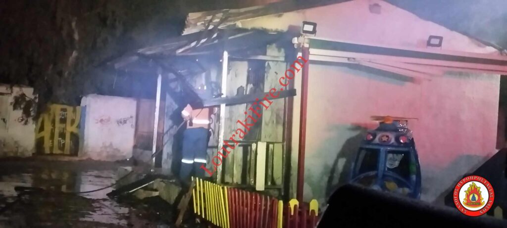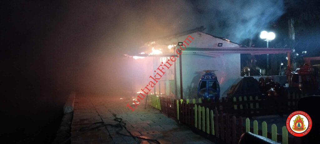 Η δεύτερη πυρκαγιά ακολούθησε το βράδυ γύρω στις 22:00 στο παλιό Λιμεναρχείο που βρίσκεται εντός του παραλιακού πάρκου του Λουτρακίου.