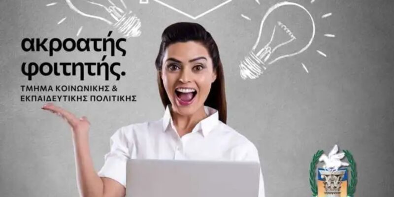 Μία νέα εκπαιδευτική πρωτοβουλία ανέλαβε το Τμήμα Κοινωνικής και Εκπαιδευτικής Πολιτικής του Πανεπιστημίου Πελοποννήσου. Η πρωτοβουλία έχει τίτλο «Ακροατής Φοιτητής» και ξεκινά τη λειτουργία της από το εαρινό εξάμηνο 2023-24.