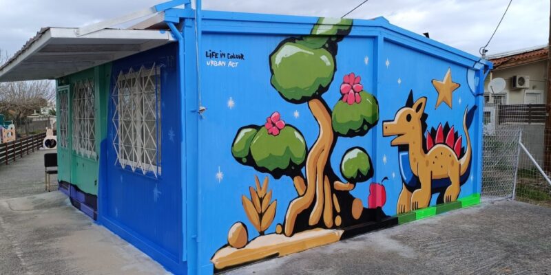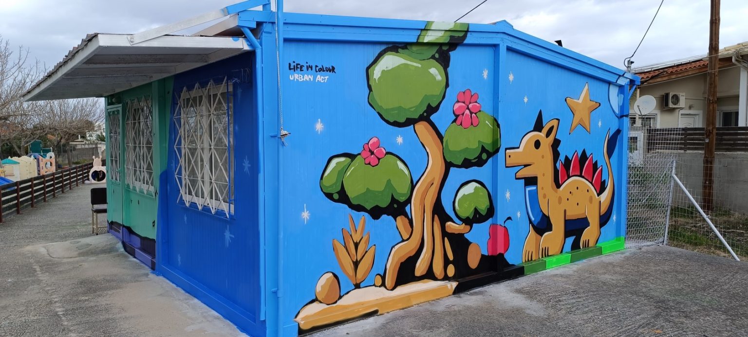 “O Life In Colour μεταμόρφωσε στο σύνολο του το 11ο Νηπιαγωγείο Κορίνθου, με μια σειρά μοναδικών τοιχογραφιών, με αφορμή τo πρόγραμμα “Ζωγραφίζοντας Σχολικά Κτίρια” της UrbanAct.
