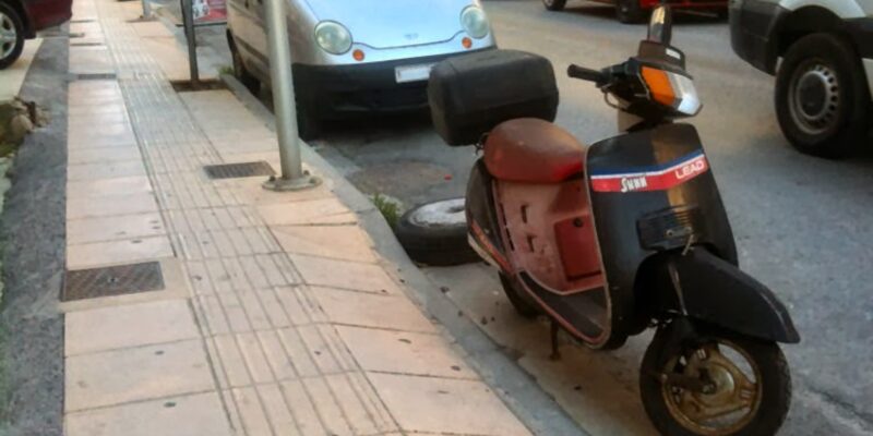 Θυμίζουμε ότι σε αντίθεση με ό,τι πιστεύεται το παρκάρισμα ενός δικύκλου, παράλληλα με το πεζοδρόμιο είναι απόλυτα νόμιμο. Αρκεί φυσικά, το δίκυκλο να είναι ενεργό όχημα: Να φέρει πινακίδες και να έχει εξοφλήσει τέλη κυκλοφορίας, όχι δηλαδή να είναι ένα εγκαταλειμμένο, διαλυμένο ή χωρίς πινακίδες όχημα. Μάλιστα είναι «πιο σωστό», από νομικής άποψης, από το συνηθισμένο κάθετο παρκάρισμα στους αστικούς δρόμους.