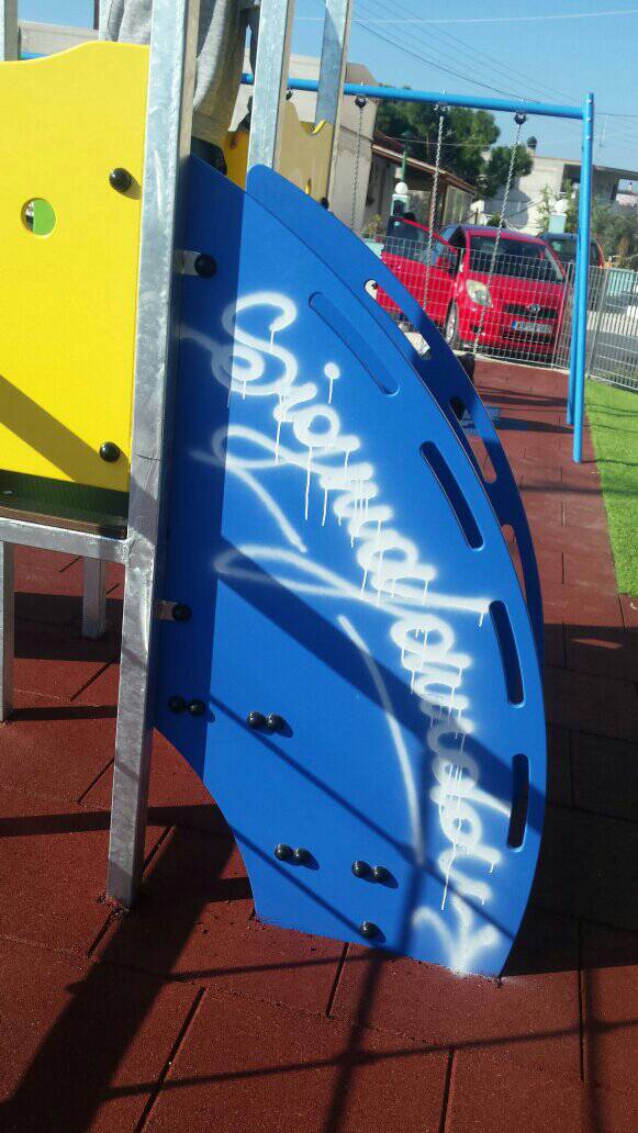 “ΝΤΡΟΠΗ & ΑΙΣΧΟΣ σε όλους εκείνους που θεωρούν ότι η νέα παιδική χαρά του Οικισμού μας αλλά και κάθε νέα υποδομή μπορεί να γίνει χώρος βεβήλωσης.