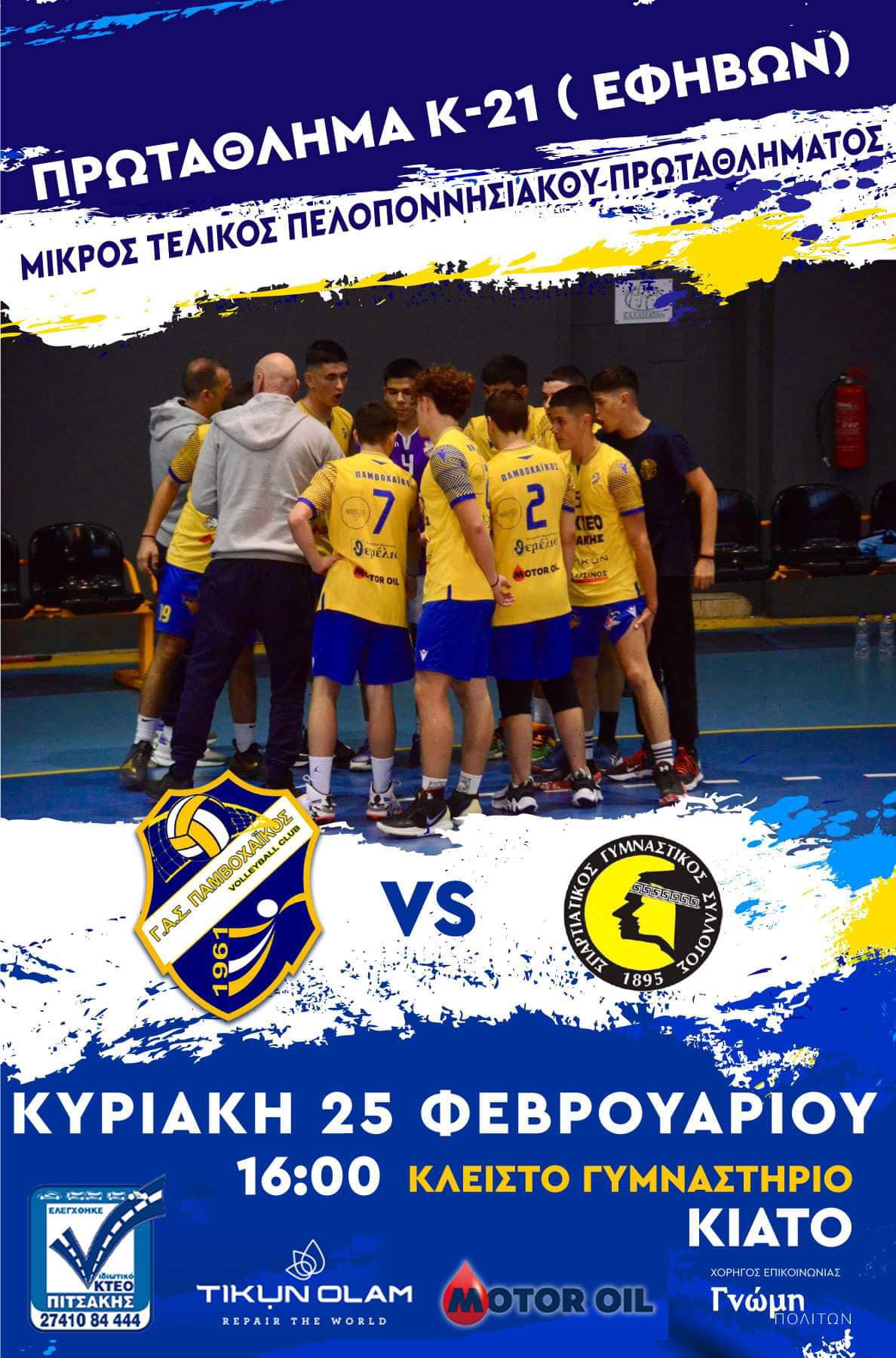 Η αναμέτρηση θα λάβει χώρα την Κυριακή 25 Φεβρουαρίου, στις 16:00 μ.μ., στο Κλειστό Γυμναστήριο Κιάτου.