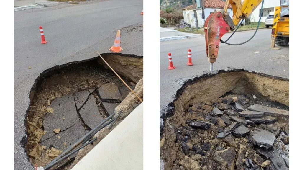 – Αποκατέστησαν σημεία του οδοστρώματος με καθίζηση στην ΠΕΟ Κορίνθου – Πατρών στη Τ.Κ. Πιτσών.
