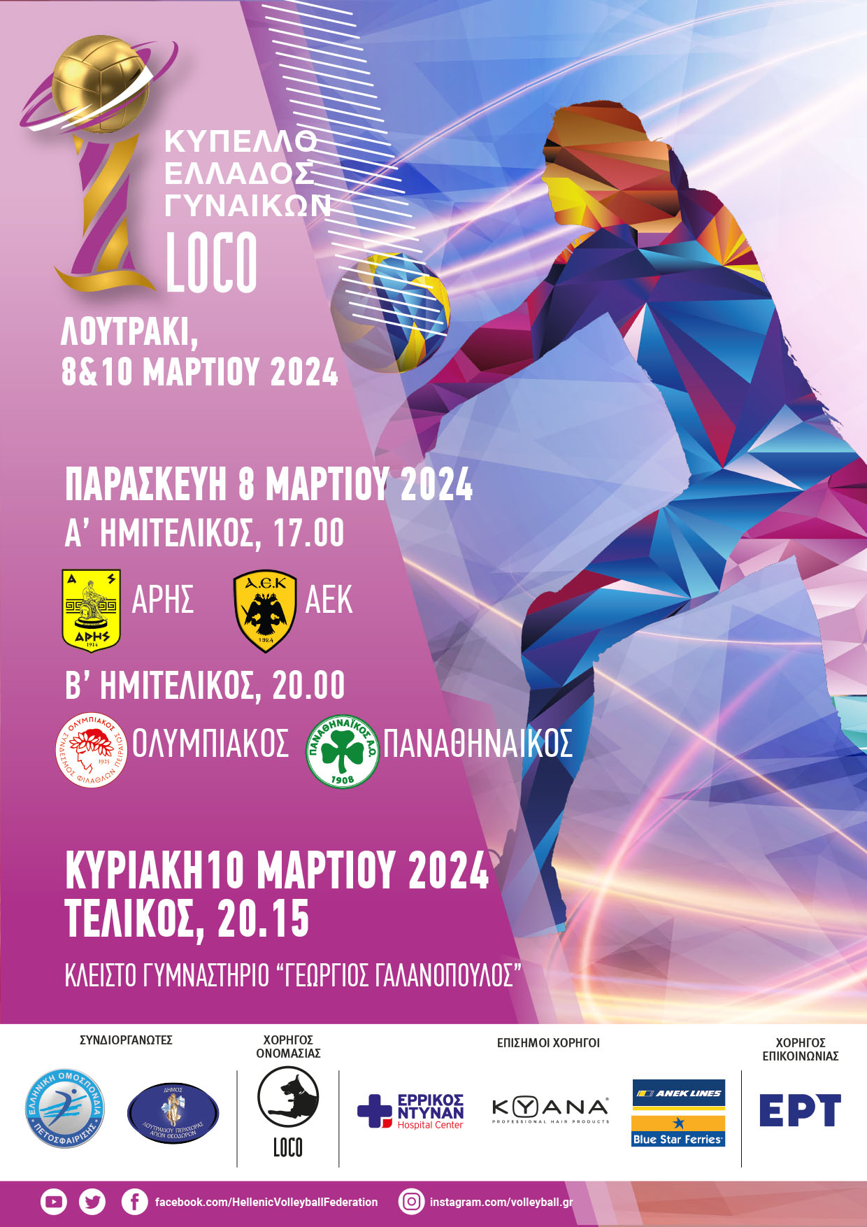 Το τριήμερο 8-10 Μαρτίου θα διεξαχθεί στο κλειστό γυμναστήριο «Γεώργιος Γαλανόπουλος» στο Λουτράκι το Final-4 του Κυπέλλου Ελλάδος Γυναικών Loco με τη συμμετοχή του Ολυμπιακού, του Παναθηναϊκού, της Α.Ε.Κ. και του Άρη.