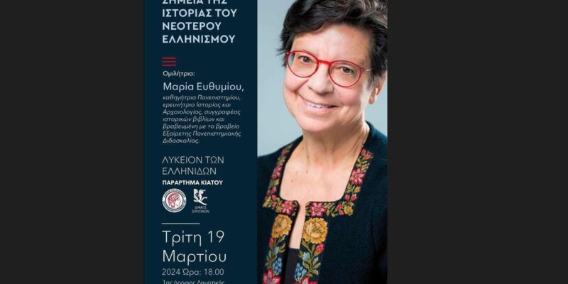 Το Λύκειον των Ελληνίδων Κιάτου έχει την χαρά και την τιμή να φιλοξενήσει την κα Μαρία Δ. Ευθυμίου, Ομότιμη Καθηγήτρια Ιστορίας στο Εθνικό και Καποδιστριακό Πανεπιστημίο Αθηνών, την Τρίτη 19 Μαρτίου 2024 και ώρα 18.00 στον 1ο όροφο της Δημοτικής Βιβλιοθήκης του Δήμου Σικυωνίων.