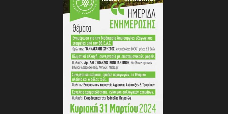 1_ΚΟΡΙΝΘΙΑ Ημερίδα ενημέρωσης Απο τον Αγροτικό Συνεταιρισμό Πάσιου – Κλημεντίου By Sfedona edit 27/03/2024 ShareTweet 0