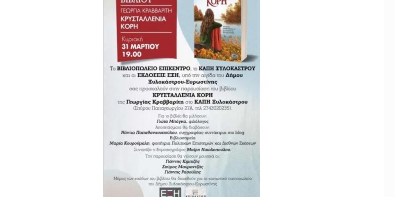 1_ΚΟΡΙΝΘΙΑ Παρουσίαση Βιβλίου Γεωργίας Κραββαρίτη “ΚΡΥΣΤΑΛΛΕΝΙΑ ΚΟΡΗ” By Sfedona edit 29/03/2024 ShareTweet 0