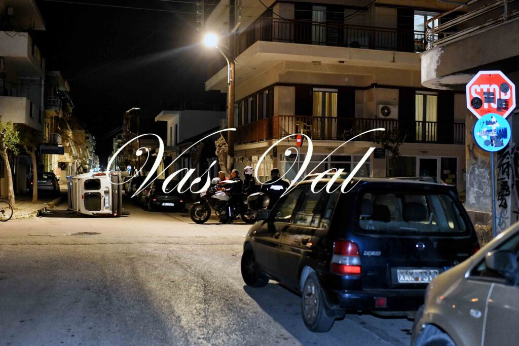Η σύγκρουση των οχημάτων συνέβη στη συμβολή των οδών Κωστή Παλαμά και Ερμού με το ένα από τα αυτοκίνητα να αναποδογυρίζει στην μέση του οδοστρώματος.