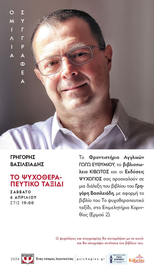 1_ΚΟΡΙΝΘΙΑ Σήμερα 6/4 ο συγγραφέας Γρηγόρης Βασιλειάδης στην Κόρινθο By Sfedona edit 06/04/2024 ShareTweet 0