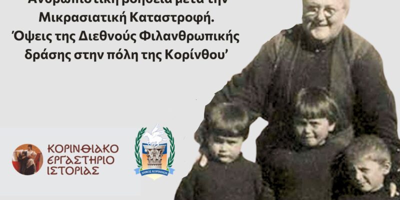 Η ημερίδα με θέμα ‘Ανθρωπιστική βοήθεια μετά την Μικρασιατική Καταστροφή. Όψεις της Διεθνούς Φιλανθρωπικής δράσης στην πόλη της Κορίνθου’, θα πραγματοποιηθεί το Σάββατο 13 Απριλίου 2024 και ώρα 19.00 μ.μ. στο Εμπορικό Επιμελητήριο Κορίνθου.
