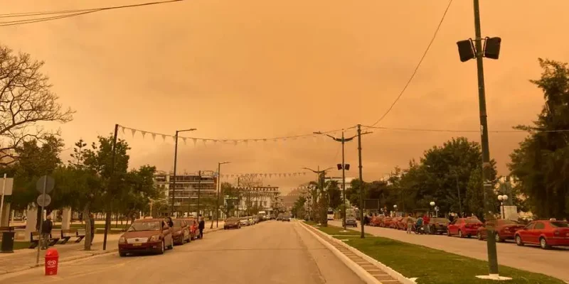 Απίθανες έως και απόκοσμες εικόνες ανεβάζουν στα social media οι κάτοικο της Κορινθίας σήμερα, Τρίτη 23 Απριλίου με το τεράστιο και βαθύ πέπλο αφρικανικής σκόνης.