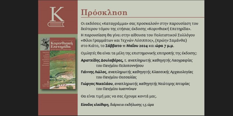 Παρουσίαση του 2ου τόμου της “Κορινθιακής Επετηρίδας” απο το Katagramma Graphical Arts
