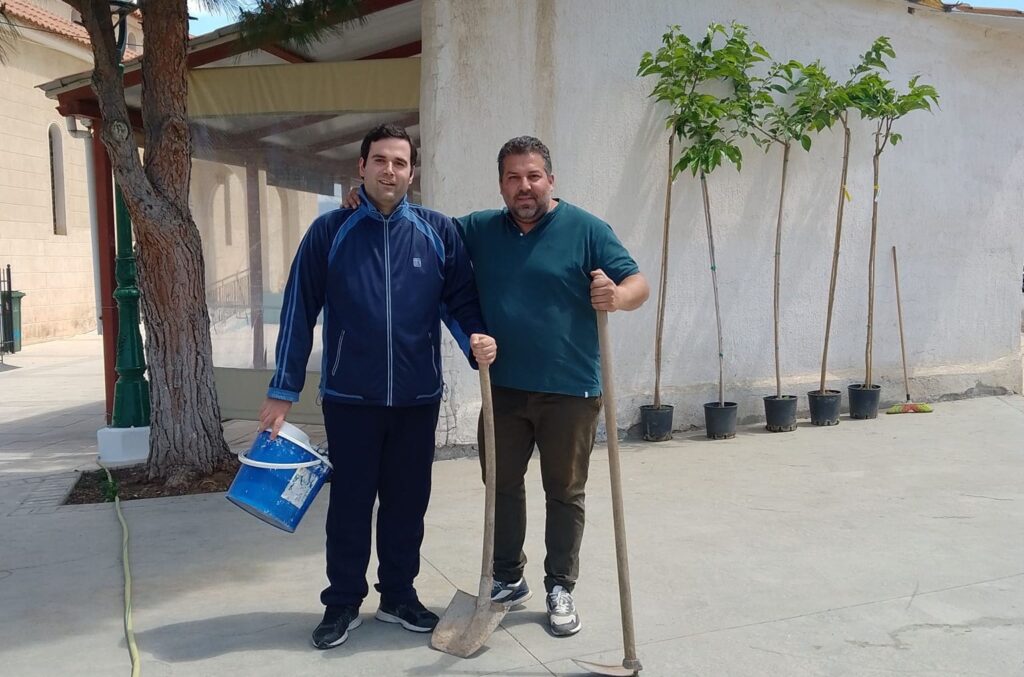 Δεντροφύτευση στον Ιερό ναό Αγίου Ιωάννη στην Καλλιθέα με τον Πρόεδρο κ. Γιώργο Ρουμελιώτη και τον πρόεδρο Συλλόγου της περιοχής κ.Αντώνη Λούκο.