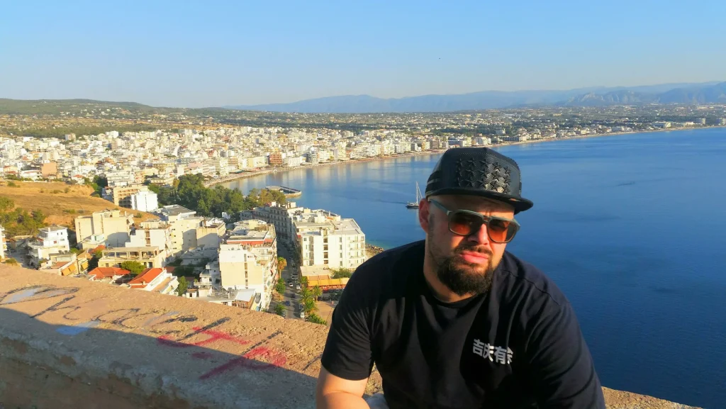 Μένω εδώ από τον Απρίλιο του 2020. Η μετακόμισή μου συνέπεσε με το πρώτο lockdown του κορωνοϊού, και είχα πολλά θέματα με τους μεταφορείς και τις μετακινήσεις. Υπέφερα μέχρι να τακτοποιηθώ. Δεν με έφερε η μοίρα εδώ, μάλλον ήταν θέμα επιλογής. Γεννήθηκα και μεγάλωσα στην πρωτεύουσα του νομού, την Κόρινθο, που είναι 7-8 χιλιόμετρα μακριά από το Λουτράκι. Αν και Κορίνθιος, είχα πάντα αδυναμία στο Λουτράκι, από τότε που ο πατέρας μου μας έφερνε οικογενειακώς για πίτσα στον παραλιακό πεζόδρομο της πόλης. Αργότερα, ως μαθητής, οι βραδινές έξοδοι με τους κολλητούς κατέληγαν πάντα στο Baby O, ένα από τα πιο ιστορικά κλαμπ της ευρύτερης περιοχής. Έφυγα για σπουδές το 1999, περιπλανήθηκα για 21 χρόνια και κάποια στιγμή είπα να γυρίσω να μείνω στον τόπο που σκεπτόμουν από πιτσιρικάς ως τον ιδανικό για να ζήσω μια μέρα. Γενικά, προσπαθώ να υλοποιώ στόχους και όνειρα που είχα ως παιδί. Μάλλον προσπαθώ να με κακομάθω ετεροχρονισμένα.