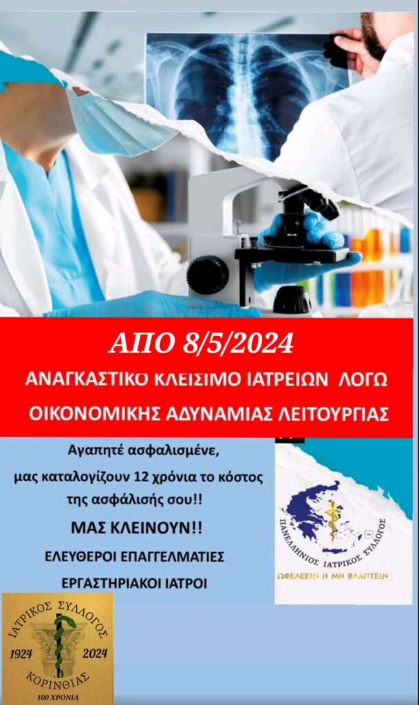 Χωρίς εργαστηριακές εξετάσεις για 3 ημέρες – Ιατρικός Σύλλογος Κορινθίας: “Δεν επιτρέπουμε να τρομοκρατούνται τα μέλη μας”