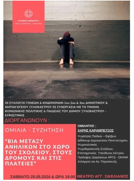 1_ΚΟΡΙΝΘΙΑ Ομιλία – Συζήτηση με θέμα : “Βία μεταξύ Ανηλίκων Στο Χώρο Του Σχολείου, Στους Δρόμους και στις Πλατείες” By Sfedona edit 21/05/2024 ShareTweet 0 Ομιλία – Συζήτηση με θέμα : “Βία μεταξύ Ανηλίκων Στο Χώρο Του Σχολείου, Στους Δρόμους και στις Πλατείες”