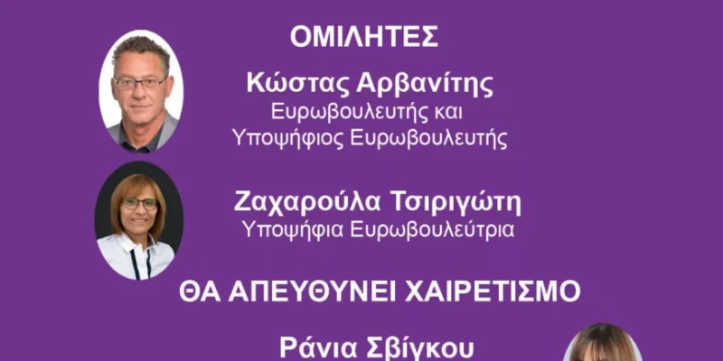 Στην εκδήλωση θα συμμετέχουν οι υποψήφιοι ευρωβουλευτές Κώστας Αρβανίτης και  Ζαχαρούλα Τσιριγώτη, η Γραμματέας της Κ.Ε. του ΣΥΡΙΖΑ-ΠΣ, Ράνια Σβίγκου και ο βουλευτής Κορινθίας και Τομεάρχης Μεταναστευτικής Πολιτικής, Γιώργος Ψυχογιός.