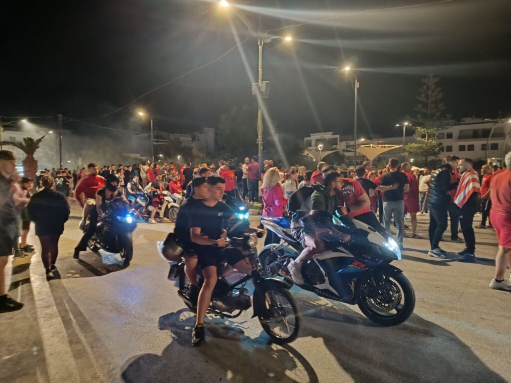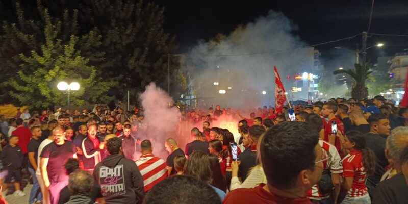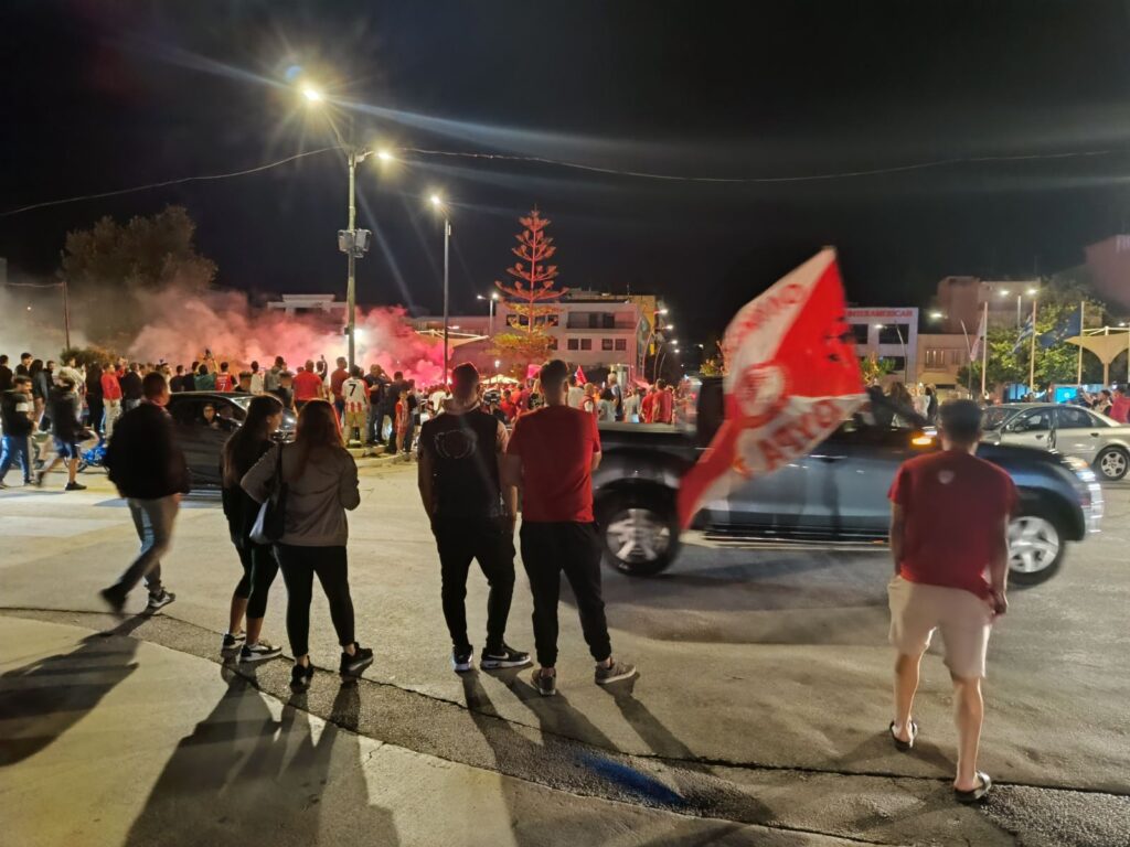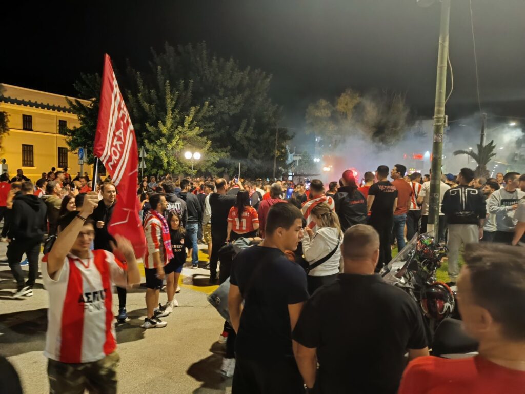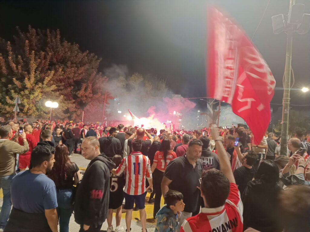 Φίλαθλοι του Ολυμπιακού συγκεντρώθηκαν στην κεντρική οδό της Κορίνθου, την Εθνικής Αντιστάσεως, και πανηγύρισαν για την ομάδα τους μέχρι τις πρώτες πρωινές ώρες. Συνθήματα, καπνογόνα, βεγγαλικά, κόρνες και κόκκινα κασκόλ δημιούργησαν μια εκρηκτική φιέστα γεμάτη χαμόγελα και περηφάνια!