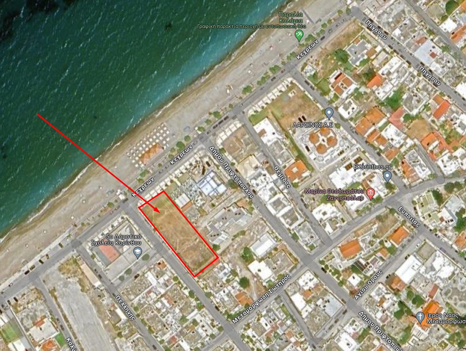 Το οικόπεδο αυτό βρίσκεται προς την δυτική άκρη της παραλίας Καλάμια, ακριβώς απέναντι από το 5ο δημοτικό σχολείο.