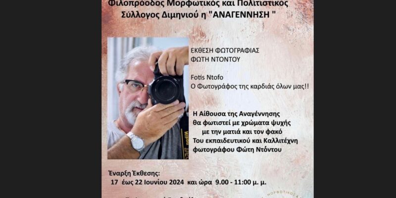 1_ΚΟΡΙΝΘΙΑ Έκθεση φωτογραφίας του Φώτη Ντόντου στο Διμηνιό By Sfedona edit 14/06/2024 ShareTweet 0 Έκθεση φωτογραφίας του Φώτη Ντόντου στο Διμήνιο