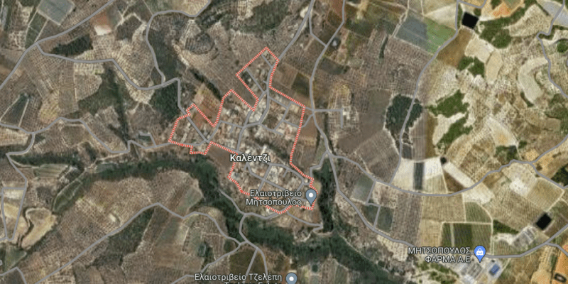 Η πρώτη μαρτυρία περί της υπάρξεως περιοχής «Καλέντζι» στην Κορινθία καταγράφεται στη δημοπρασία για τους Ελαιώνες της Επαρχίας Κορινθίας του έτους 1834, όπου γίνεται αναφορά σε αγροτική έκταση με την ονομασία «Καλέντσι», χωρίς να αναφέρονται εγκατεστημένες οικογένειες και κάτοικοι. Στη διακήρυξη αυτή περί ενοικιάσεως των δύο κατά την Κορινθίαν Ελαιώνων[3] και στον λεπτομερή πίνακα του εδώθε του ποταμού (κατά την Βόχαν) ελαιώνα γίνεται αναφορά σε «Καλέντσι», όπου καταγράφονται τριάντα τρία (33) στρέμματα ακαλλιέργητα (χέρσα), εκατόν πενήντα τέσσερα (154) στρέμματα καυμένα και μονάχα δύο (2) στρέμματα ελιές.
