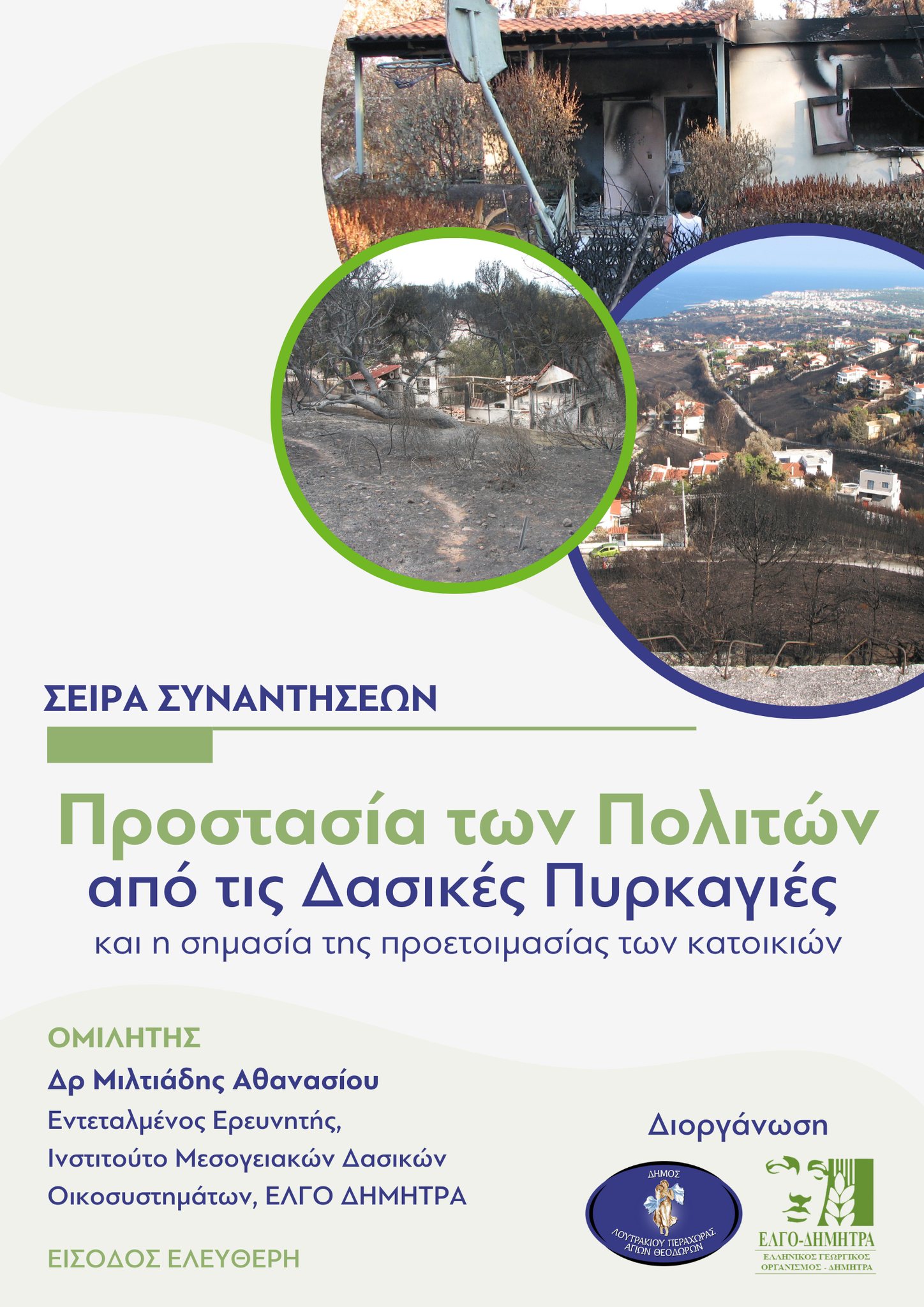 Ομιλητής ο Δρ. Μιλτιάδης Αθανασίου, ειδικός στις δασικές πυρκαγιές και εντεταλμένος Ερευνητής στο Ινστιτούτο Μεσογειακών Δασικών Οικοσυστημάτων του ΕΛΓΟ ΔΗΜΗΤΡΑ.