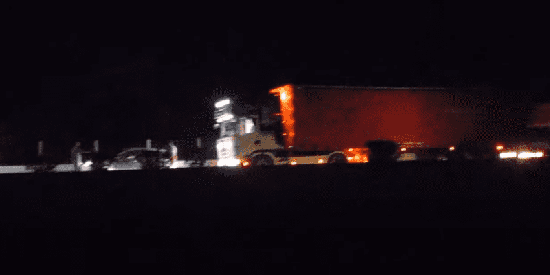 Σύμφωνα με το agioitheodoroi.com όταν έσκασε το λάστιχο του φορτηγού κατεύθυνση προς Αθήνα, διασκορπίστηκαν θραύσματα στον δρόμο, με αποτέλεσμα διερχόμενοι οδηγοί να πέσουν πάνω τους και έτσι να προκληθούν φθορές στα αυτοκίνητά τους.
