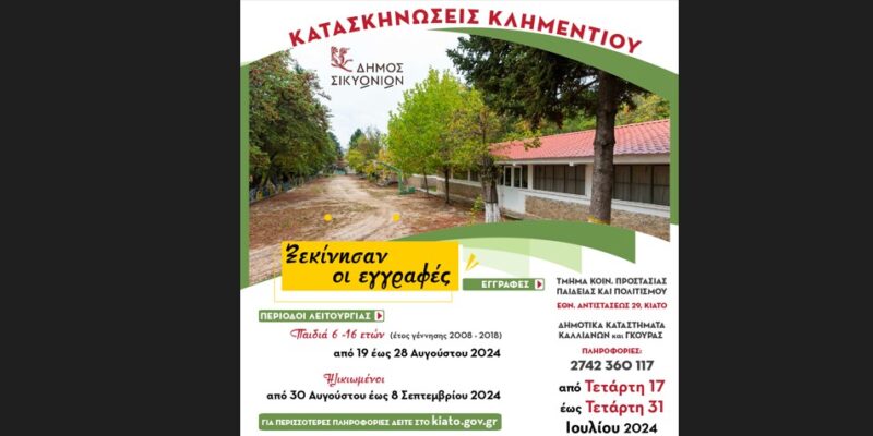 ΞΕΚΙΝΗΣΑΝ ΟΙ ΕΓΓΡΑΦΕΣ στις Κατασκηνώσεις Κλημεντίου.