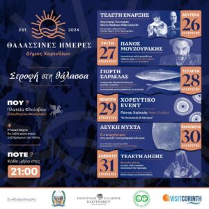 Με τις «Θαλασσινές Ημέρες» ο Δήμος θέλει να κάνει το πρώτο βήμα για αυτό που χρόνια συζητάμε, ακόμα και στις παρέες μας: Να στρέψουμε το πρόσωπο της πόλης στην θάλασσα. Να αλλάξουμε τον τρόπο με τον οποίο την βλέπουν, πρώτα οι κάτοικοι, και μετά οι επισκέπτες. Και να αναδείξουμε τον δυναμισμό της Κορίνθου, να τις αποδώσουμε πάλι ένα από τα βασικά στοιχεία που την έκαναν «ου παντός πλειν»: τον ανοιχτό χαρακτήρα.