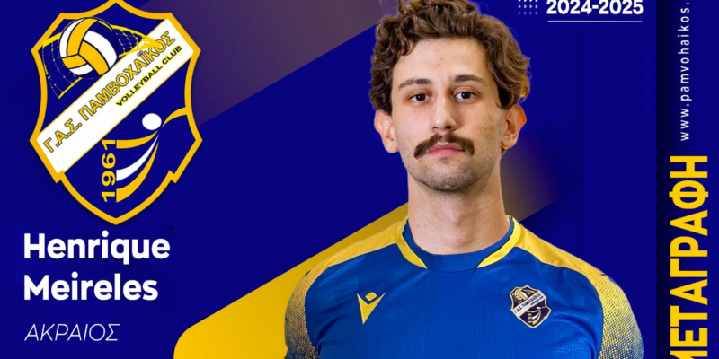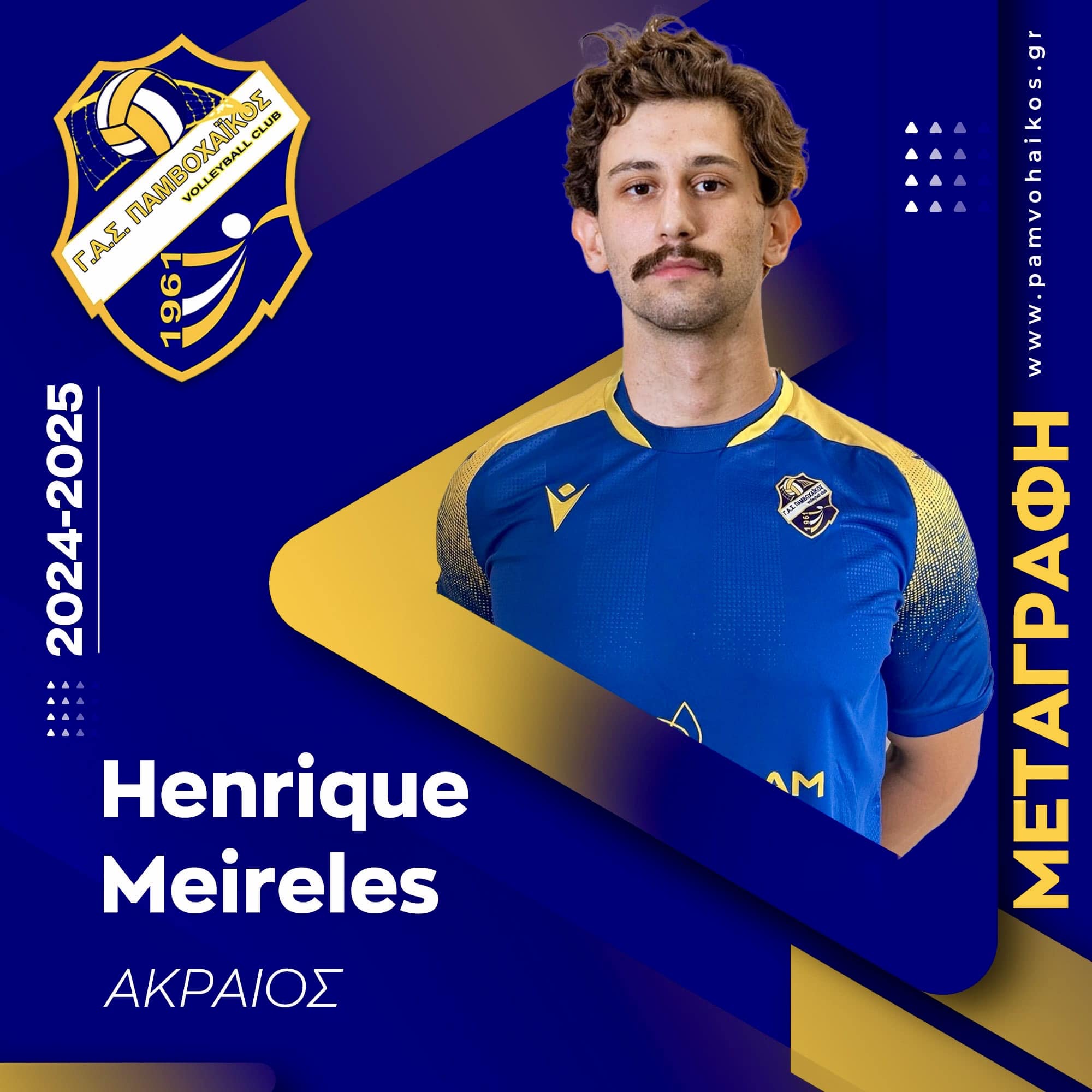 Η Διοίκηση του Παμβοχαϊκού είναι στην ευχάριστη θέση να ανακοινώσει την απόκτηση του Βραζιλιάνου ακραίου, Henrique Meireles. Ο ικανός και έμπειρος αθλητής, με μια σημαντική πορεία στο βόλεϊ της Βραζιλίας, έρχεται να ενισχύσει τις τάξεις της ομάδας μας για την επερχόμενη σεζόν.