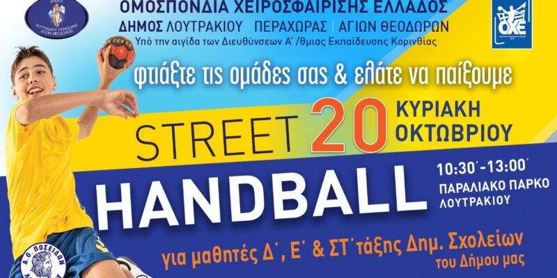 Το τουρνουά Street Handball διοργανώνεται από την Ομοσπονδία Χειροσφαίρισης Ελλάδος (ΟΧΕ) σε συνεργασία με τον Δήμο Λουτρακίου – Περαχώρας – Αγίων Θεοδώρων και το Γραφείο Φυσικής Αγωγής Κορινθίας.