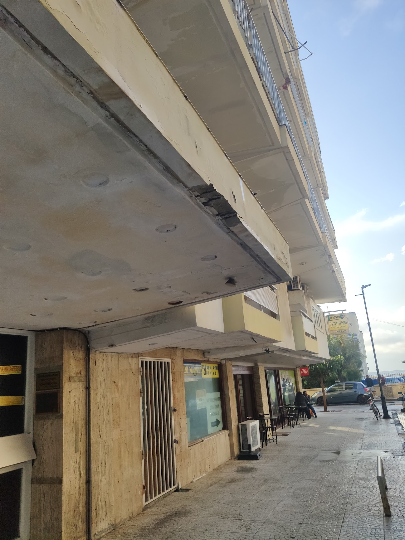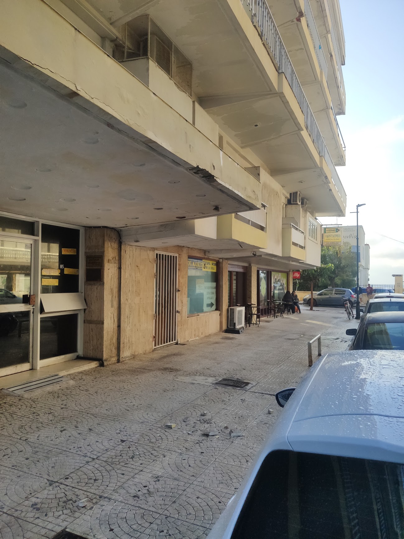 📅06 Σεπτεμβρίου 2023 – Σοβάδες από την είσοδο της πολυκατοικίας πέφτουν στο πεζοδρόμιο.