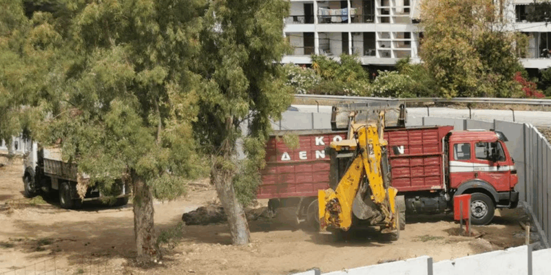 Παράλληλα, επισημαίνεται πως κόπηκαν μεγάλα πεύκα, τα οποία βρίσκονταν επί χρόνια στο σημείο, προκαλώντας αντιδράσεις και ανησυχία για το μέλλον του χώρου.