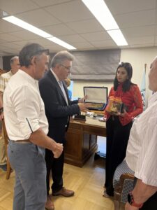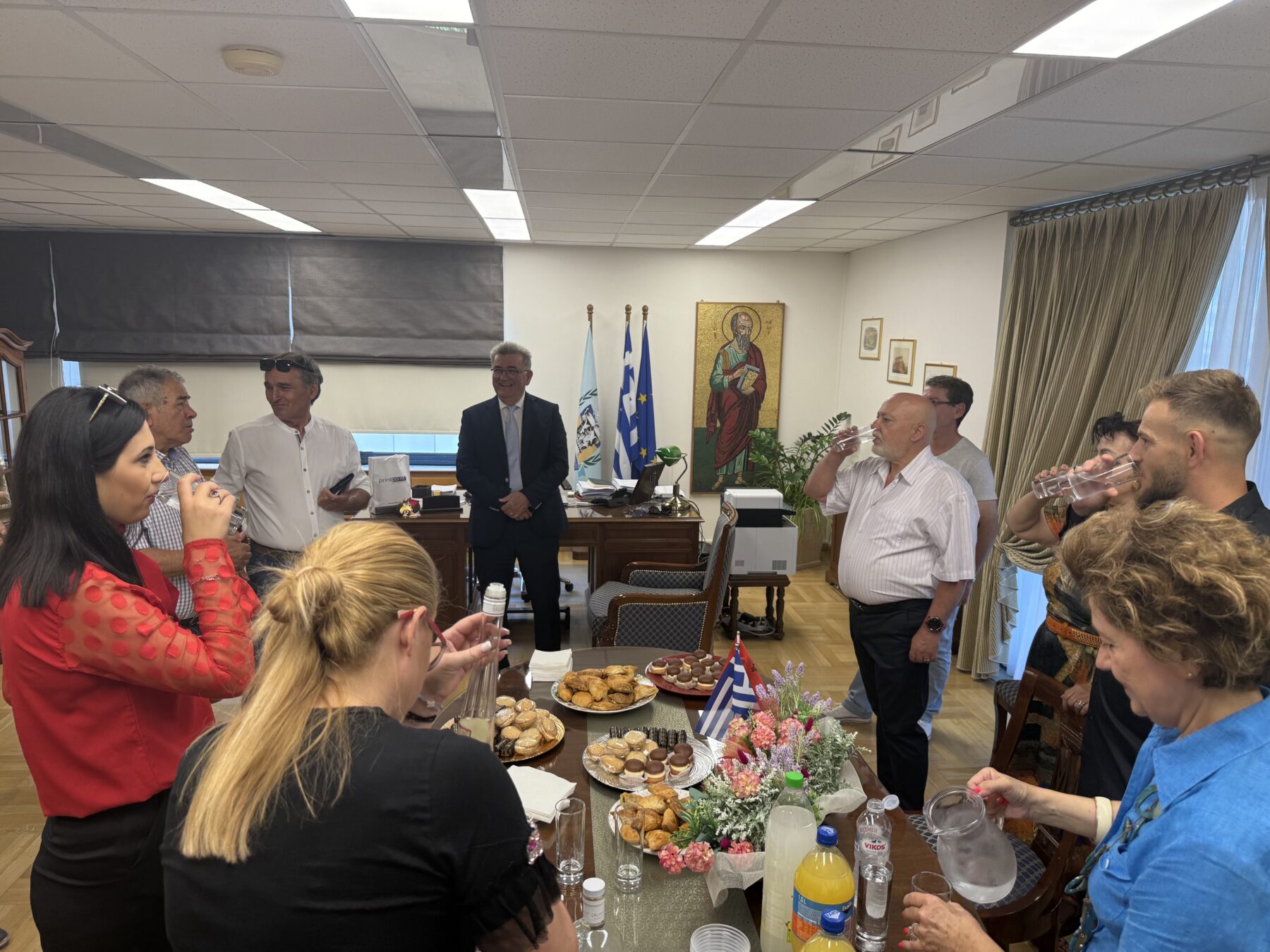 Η αλβανική αποστολή βρέθηκε σήμερα στο Δημαρχείο, όπου είχε μία ιδιαίτερα θερμή και μεγάλη συνάντηση με τον Δήμαρχο, Νίκο Σταυρέλη. Επικεφαλής της αποστολής ήταν η Αντιδήμαρχος Πολιτισμού του Μαλίκι, Ρουντίνα Μπράγκου, ενώ συμμετείχαν σε αυτήν πολλά πρόσωπα, ανάμεσά τους ο Φεστίν Τομόρι, πρόεδρος του Πολιτιστικού Συλλόγου «Διμίτρι Οργκότσκα» στο Μαλίκι και ο υπεύθυνος για τον Τουρισμό του Δήμου Μαλίκι, Μαρκέλ Κούπε.