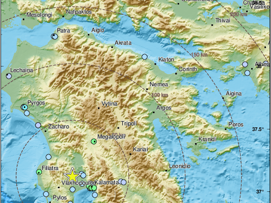 Το επίκεντρο του σεισμού, ο οποίος σημειώθηκε στις 12.49 σήμερα Πέμπτη, εντοπίζεται περίπου 20 χιλιόμετρα βορειοδυτικά της Καλαμάτας και 11 χιλιόμετρα βορειοδυτικά της Μεσσήνης.