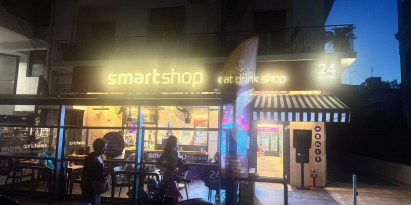 Το κατάστημα της Νέας Σμύρνης (Λεωφόρος Ελευθερίου Βενιζέλου 150) διαθέτει βασικά είδη πρώτης ανάγκης, σνακ, ποτά, αναψυκτικά και προϊόντα κάβας.