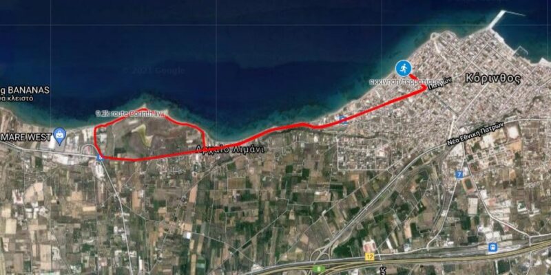 Η εκκίνηση θα δοθεί από την Κεντρική πλατεία Καλάμια Κορίνθου (άγαλμα Μ. Αλεξάνδρου) όπου θα γίνει και ο τερματισμός. Η διαδρομή του αγώνα είναι ασφάλτινη εκτός από 1200 m χωμάτινης διαδρομής στην αναστροφή στο ύψος του Αρχαίου λιμανιού του Λεχαίου. Η διαδρομή του αγώνα είναι επίπεδη και περνά από το παραλιακό μέτωπο της πόλης ενώ σκοπός του αγώνα είναι η ανάδειξη του υγρότοπου του Αρχαίου Λιμανιού του Λεχαίου και η συμμετοχή αθλητών και αθλουμένων σε φυσική δραστηριότητα μετά τους περιορισμούς της πανδημίας. Για να δείτε τη διαδρομή του αγώνα πατήστε ΕΔΩ