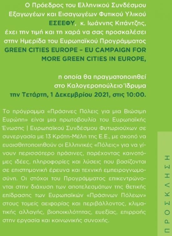 Ημερίδα με θέμα «GREENCITIESEUROPE |