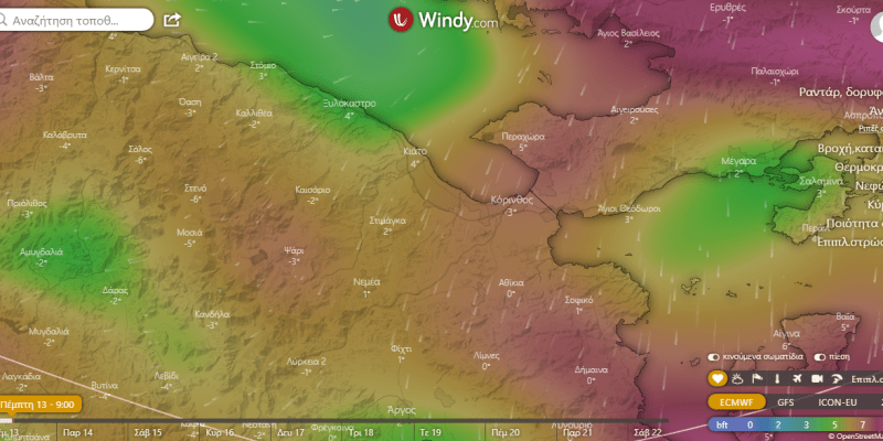 Με θερμοκρασίες υπό του μηδενός, σε πολλές περιοχές της Κορινθία, ακόμα και στα παραλιακά, κατά την διάρκεια της νύχτας, συνεχίζεται η κακοκαιρία «Διομήδης».