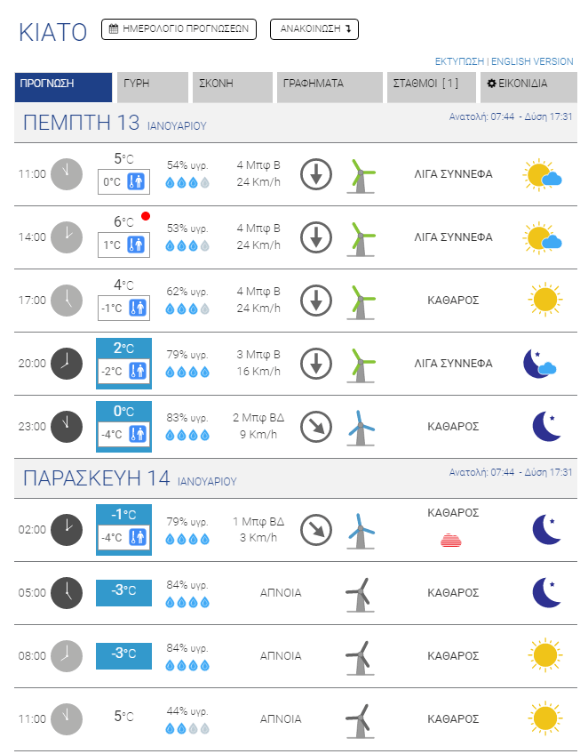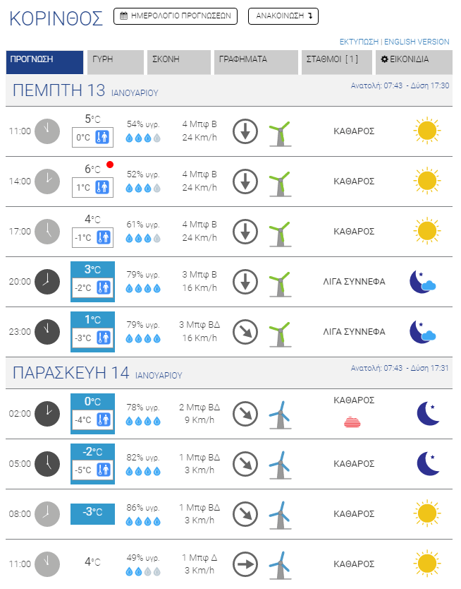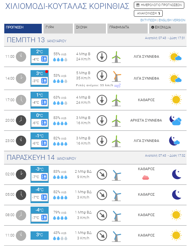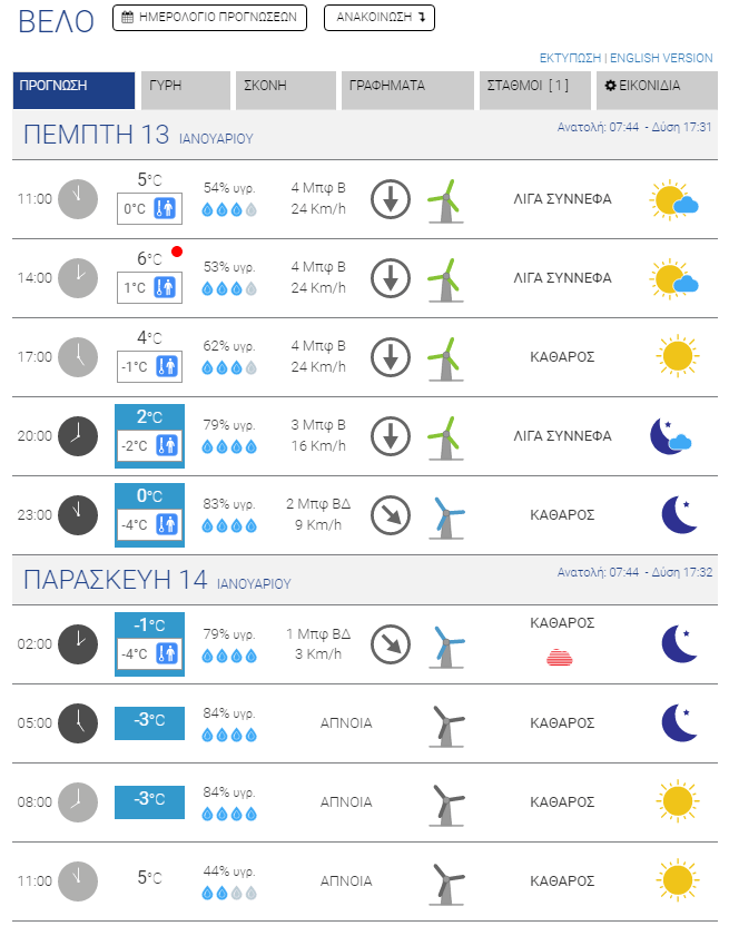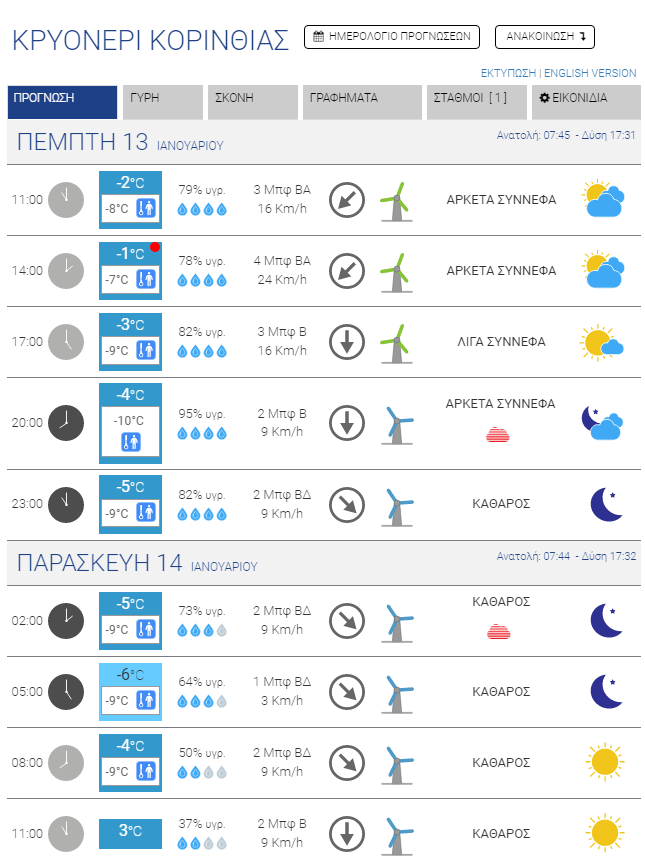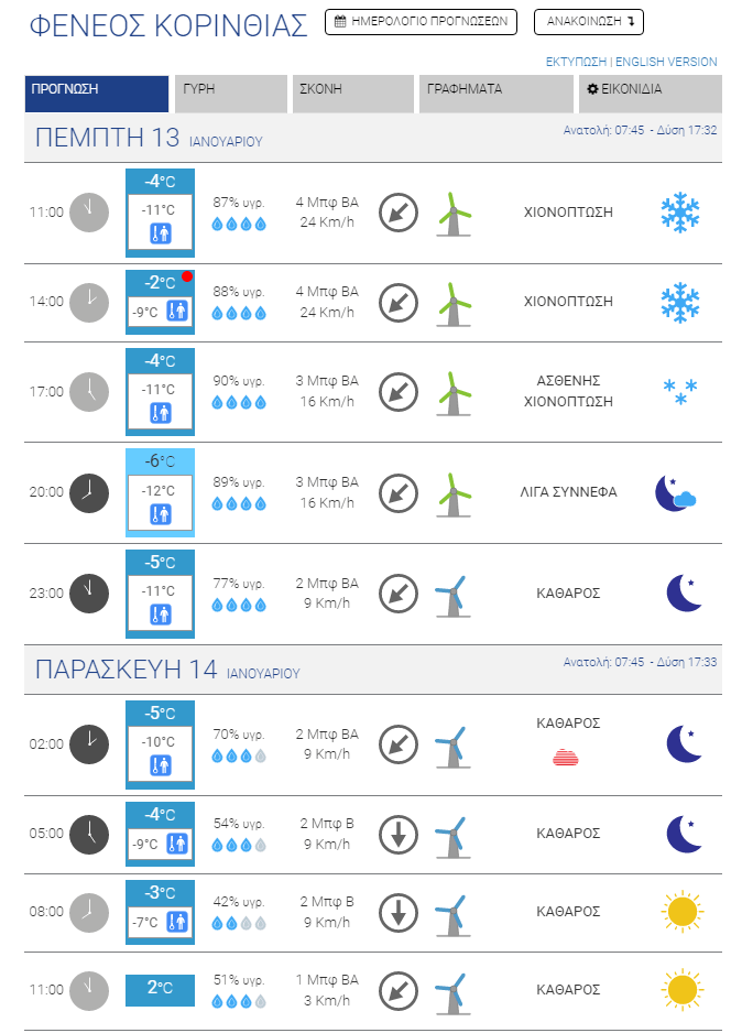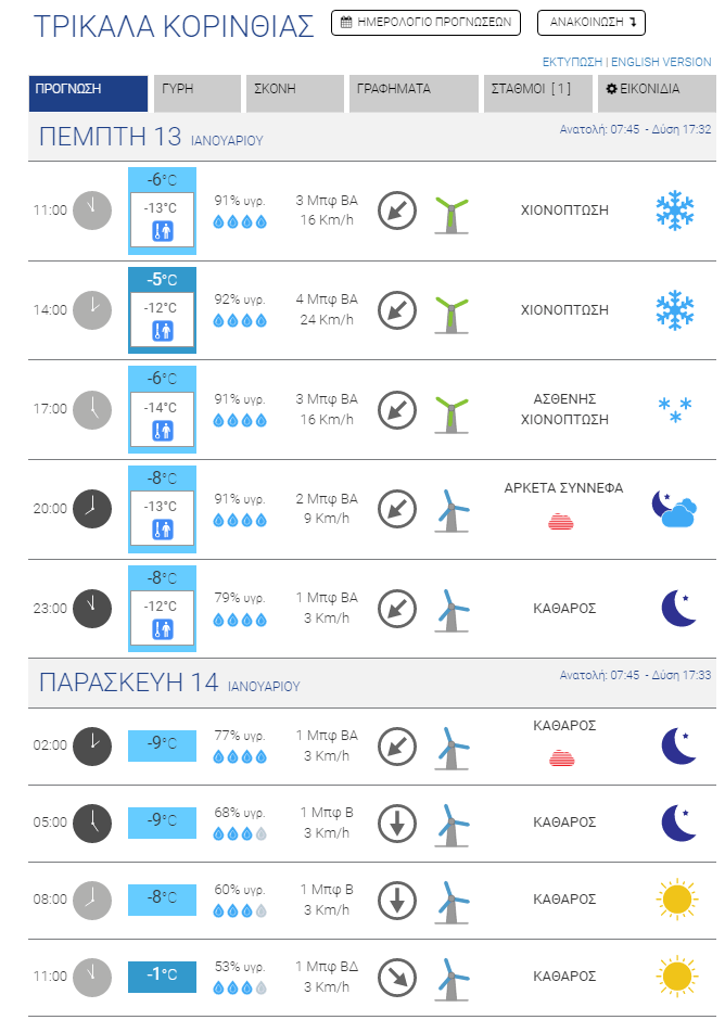 Για σήμερα, Πέμπτη, προβλέπεται περαιτέρω επιδείνωση του καιρού με ακόμα μεγαλύτερη πτώση των θερμοκρασιών, με τους μετεωρολόγους να κάνουν λόγο για την πιο κρύα ημέρα της εβδομάδας. Η ένταση των ανέμων θα παραμείνει μεγάλη, αλλά σταδιακά θα αρχίσει η εξασθένησή τους, ώστε αύριο να μιλάμε ακόμα και για πλήρη άπνοια σε κάποιες περιοχές (Ξυλόκαστρο Βέλο). Το κρύο, πάντως, θα παραμείνει δριμύ.