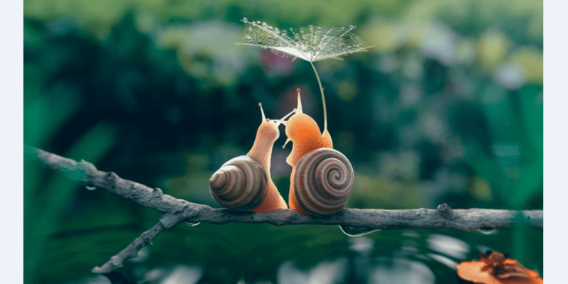 Με την βοήθεια της μακροφωτογραφίας (κοντινή φωτογραφία) μας δείχνει το μεγαλείο και την αγνότητα της φύσης μέσα από μια στιγμή δυο σαλιγκαριών που μας θυμίζουν εμάς. Αν και τα σαλιγκάρια δεν έχουν καμιά ερωτική έλξη μεταξύ τους η στιγμή μοιάζει όμως παραμυθένια.