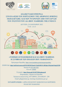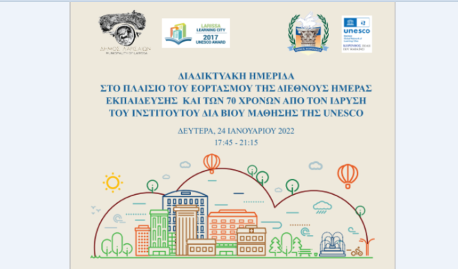Σε διαδικτυακή ημερίδα, στο πλαίσιο του εορτασμού της διεθνούς ημέρας εκπαίδευσης και των 70 χρόνων απ’ την ίδρυση του Ινστιτούτου Μάθησης της UNESCO, θα λάβει μέρος ο δήμος Κορινθίων.