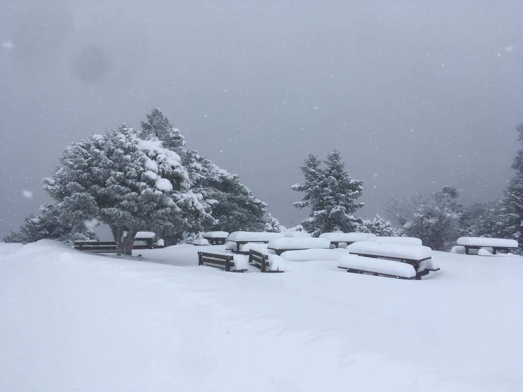 Αυτή την ώρα, πάντως, όπως φαίνεται από φωτογραφίες, το Χιονοδρομικό είναι πνιγμένο στο χιόνι.