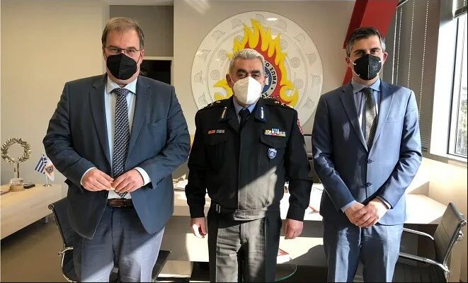 Συνάντηση με τον Αρχηγό του Πυροσβεστικού Σώματος, Αντιστράτηγο Αλέξιο Ράπανο, πραγματοποίησαν σήμερα από κοινού, ο υφυπουργός Ανάπτυξης & Επενδύσεων και βουλευτής Κορινθίας Χρίστος Δήμας με τον δήμαρχο Ξυλοκάστρου – Ευρωστίνης, Βλάση Τσιώτο.